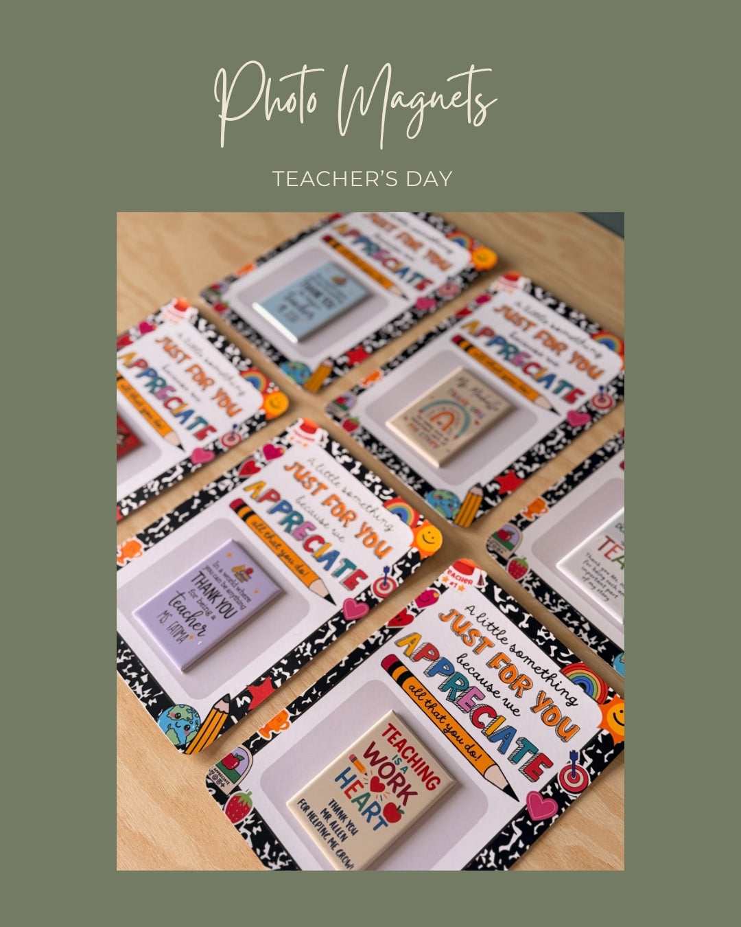 These personalized photo magnets can brighten up any fridge, locker, or workspace. A fun and thoughtful way to say thank you to the amazing teachers who inspire us every day.